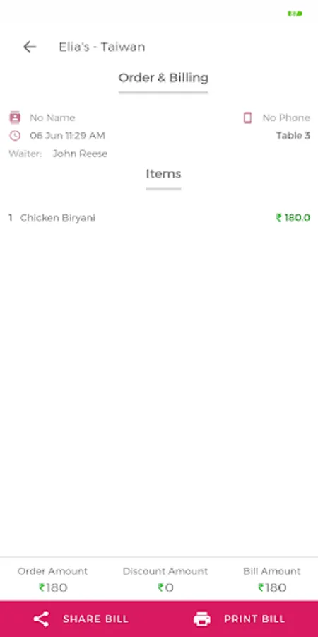 Employees at cash counter, who are responsible for Billing would use this app to bill, cancel, share & print orders
