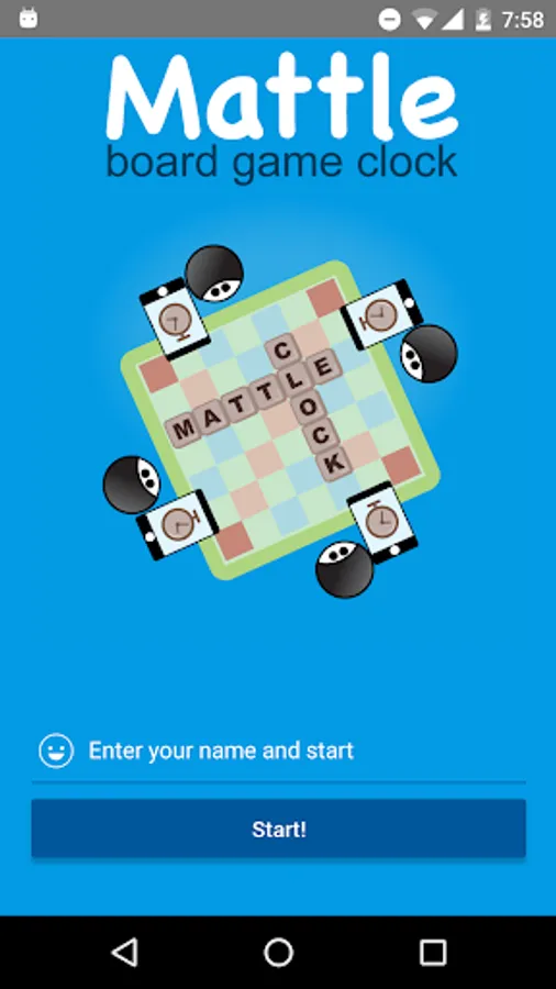 With Mattle Clock, everyone will be using their own devices and the timers are all connected behind the scene. Your clock will be ticking in your own turn. When you are done moving, press the button to pass it on to the next person. Simple as that!