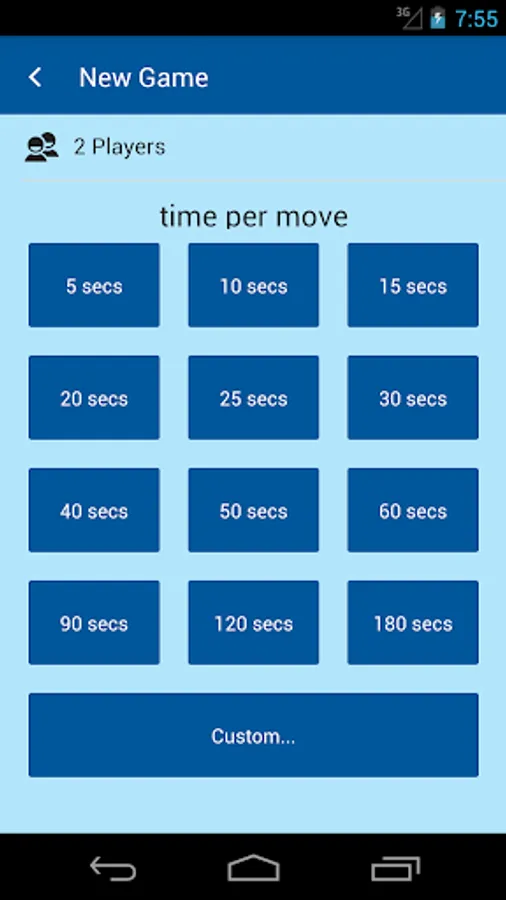 "Per-Game" mode grants a fixed amount of time for each players for the whole game, and their timers will start ticking only in their own turns. This mode is suitable for games like chess, in which players are given more flexibility to allocate their time.