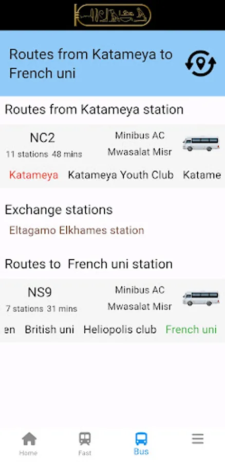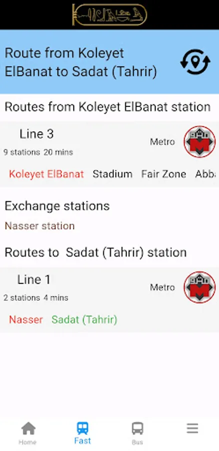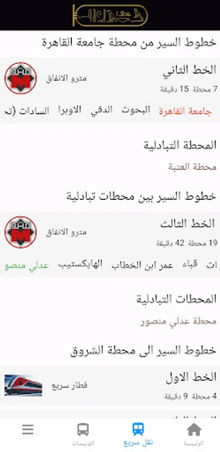 This is the first version of Mrkbt application, and it is limited in its services. This version covers the geography of Greater Cairo only, and the currently available services cover the bus network, the subway, and the light electric train only.