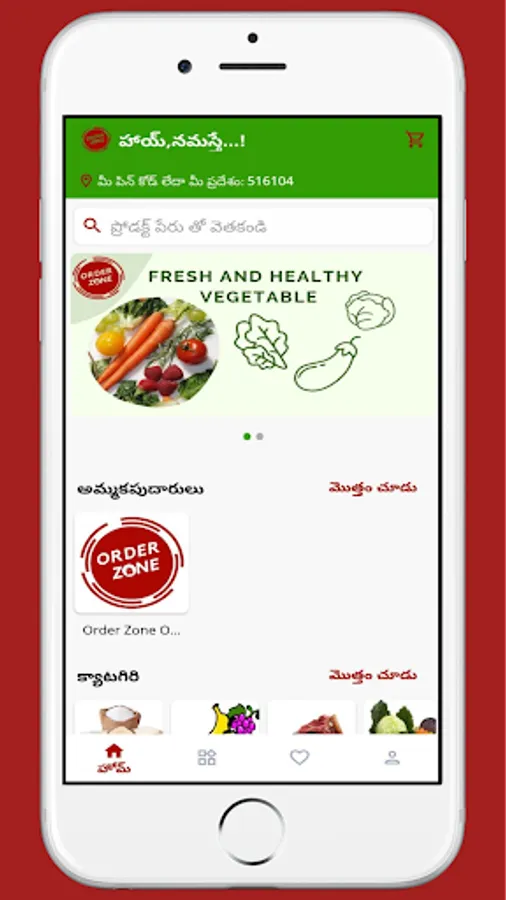 Order Zone is in trade of fresh fruits and vegetables and delivers the order to home (user’s desired address) directly.