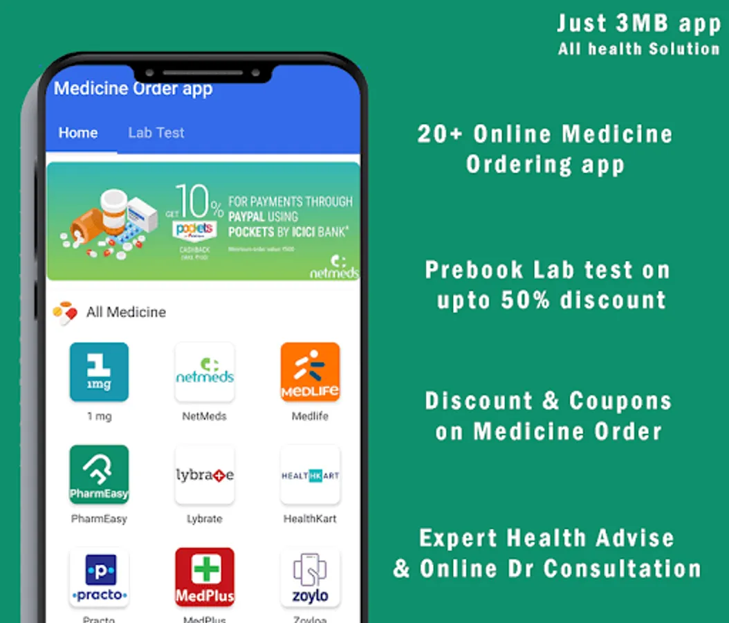 You can see prices on different apps and compare prices than buy. No need to switch apps. You will Get good deals and discount offer, Medicine Coupon code in app. You save your time and phone memory, Save you time by searching different health care things on different apps.