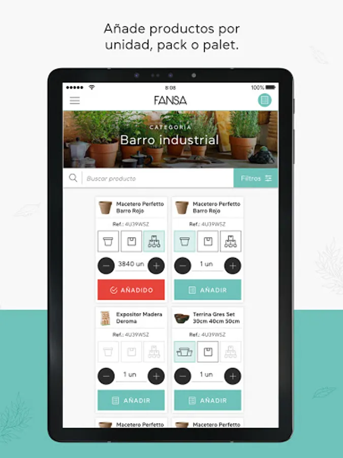 The App where professionals in the garden, landscaping, florist or decoration sector can quickly and easily access the wide range of pots and planters for plants from FANSA and request a personalized quote.
