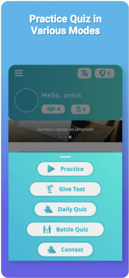 ● All types of Quiz (Practice, Test, Daily Quiz, Battle Quiz, Contest quiz)