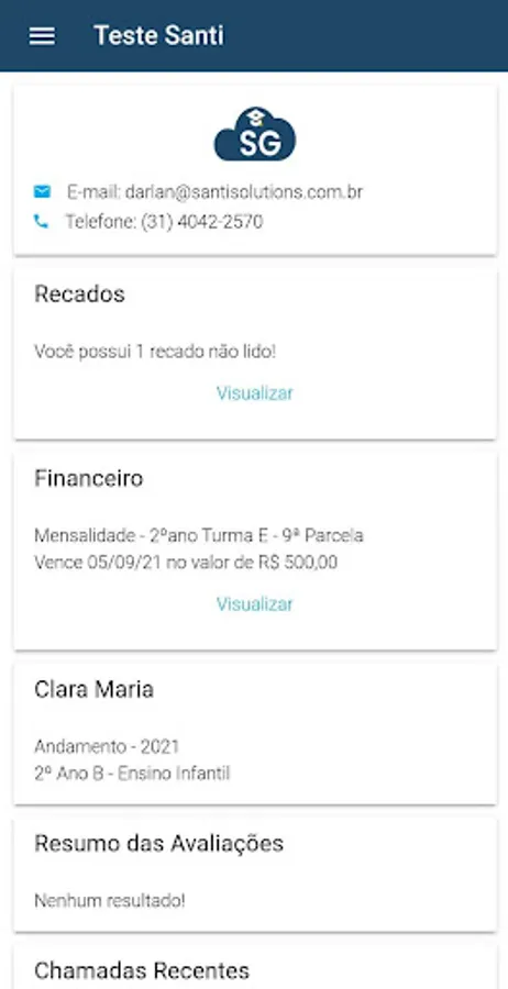 With the Sgcloud application, the student, father, mother and/or guardian will be able to see the financial statement, messages, bulletin, evaluations, class schedule, change of registration data, academic calendar, send a certificate, request documentation, all this and much more .