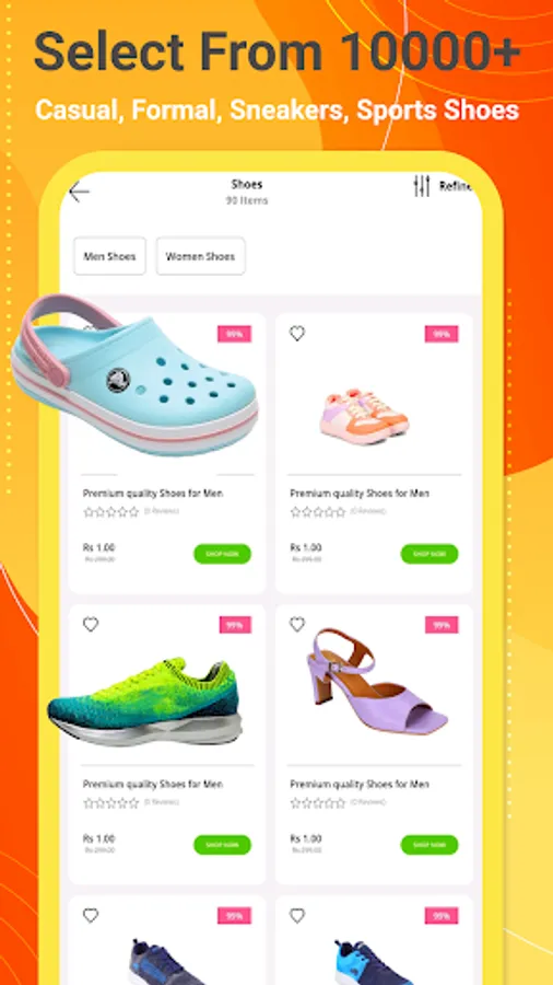 Shoes : Casual mens shoes, formal mens shoes, loafers, boots, sports shoes, women's shoes, wedges, sandals, heels, flips, etc