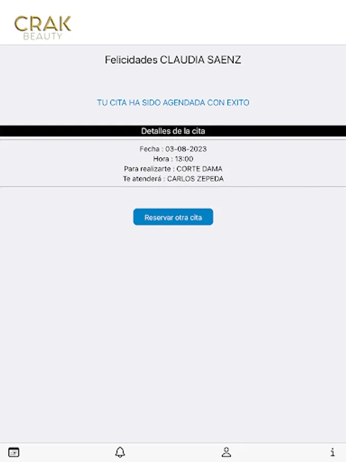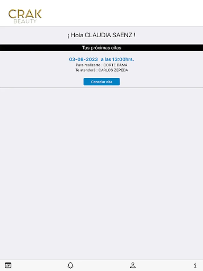 You will be able to book appointments, cancel appointments and consult your client information; as well as see important information about the room.