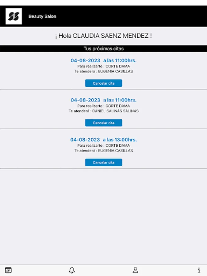 Online reservation system for beauty salons based on the SAS System, where the client can reserve, consult and cancel appointments; Likewise, you can check the gift points, electronic wallet, debits and visit history.