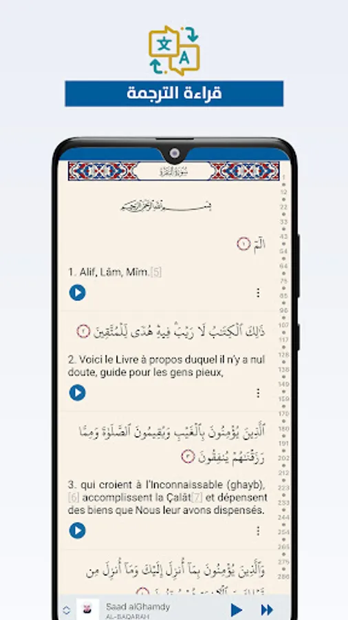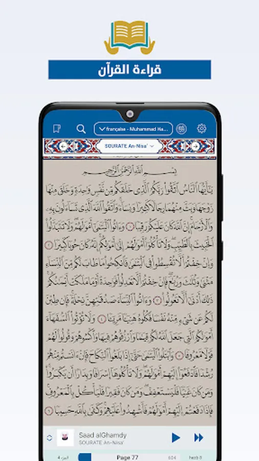 The Quran in French is there to serve those who wish to read, listen, study, research and know the message of the Quran. We are committed to bringing you the Quran in your language, with a unique design inherited from your culture.