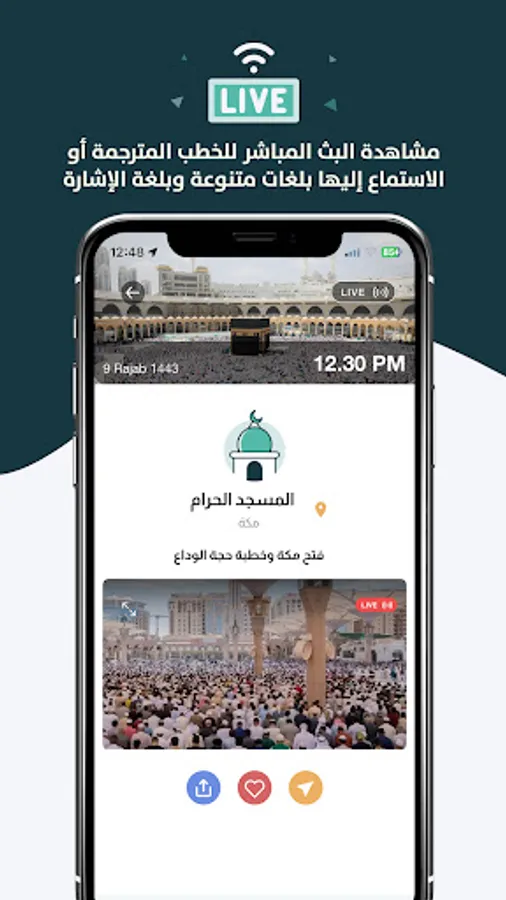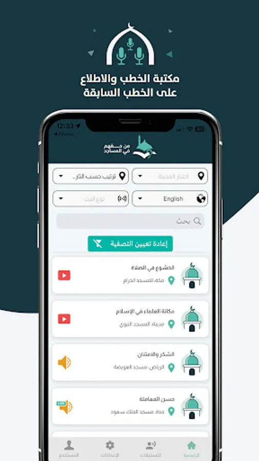 • The possibility of activating the GPS to facilitate the selection of the mosque closest and most appropriate to the user, whose sermons are recorded and translated.
