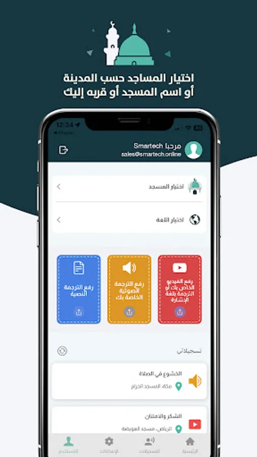 • The ability to search for the name of the mosque and choose the mosque from among the available mosques.