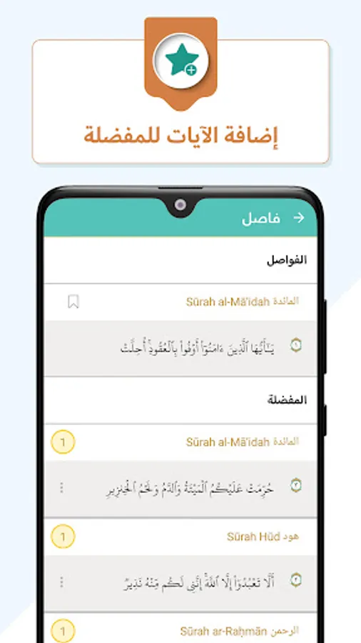 7. Ability to continue recitation from where the user left off by reopening the app to that exact page, and the ability to bookmark verses for future reference.