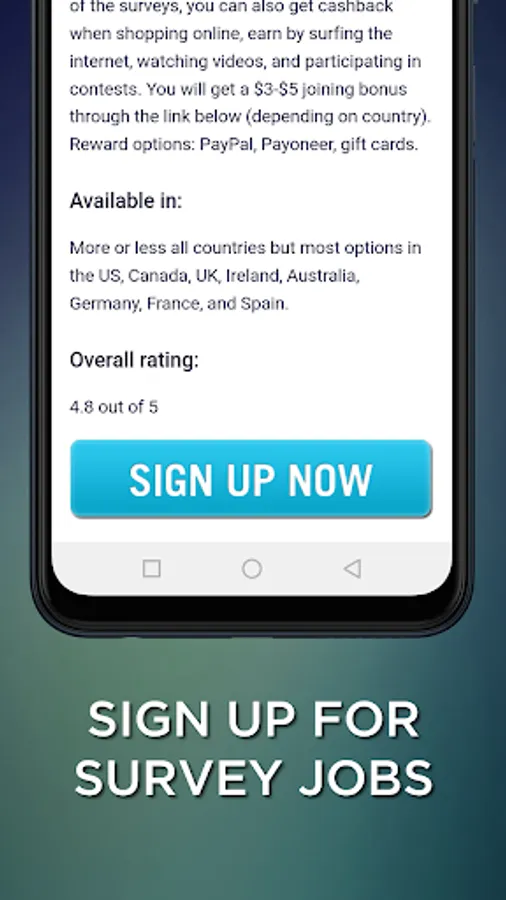 Online Survey Jobs is an excellent application for to make money online via taking surveys in USA, Canada & Australia. Taking surveys online is very easy and can earn real cash for you. You can start survey jobs in your spare time. Also, while doing it you share your opinion about a lot of products and services which is something a lot of businesses look for. Even someone who has never done anything on the internet can still do it.