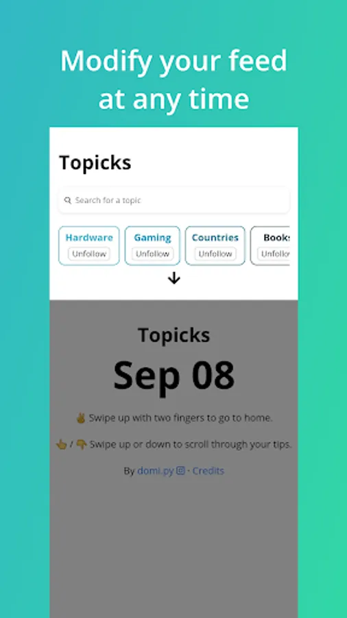 2. It's 100% free: The current version of Topicks doesn't require a payment to check more content out.