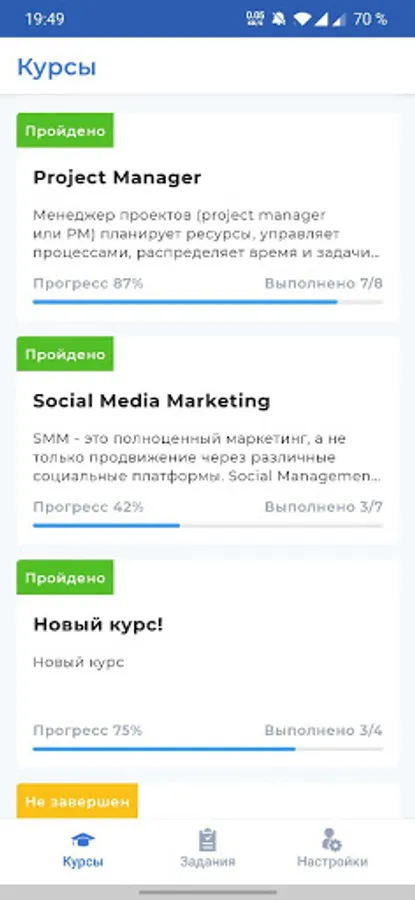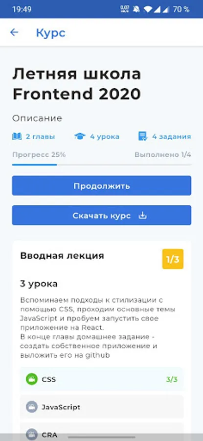 Students will be able to take the course even without the Internet. Access to content through a mobile application will allow you to study without restrictions.