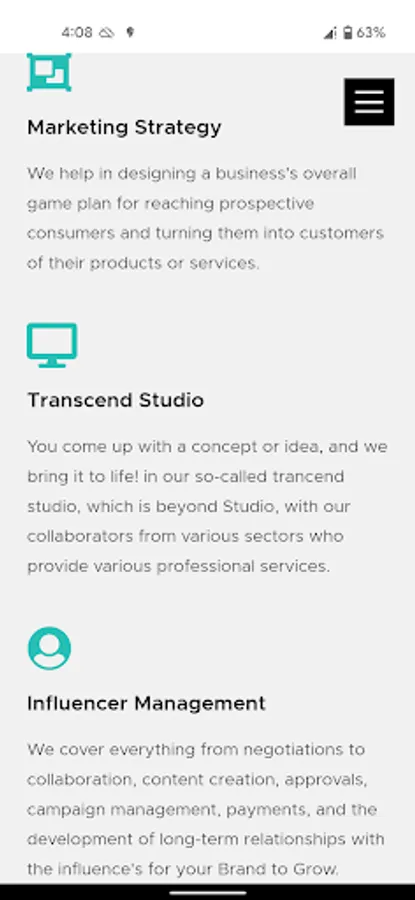 We are a transcend studio that assists businesses in developing their online presence, creating public relations, and consulting on marketing strategy to target the exact audience that the business requires.