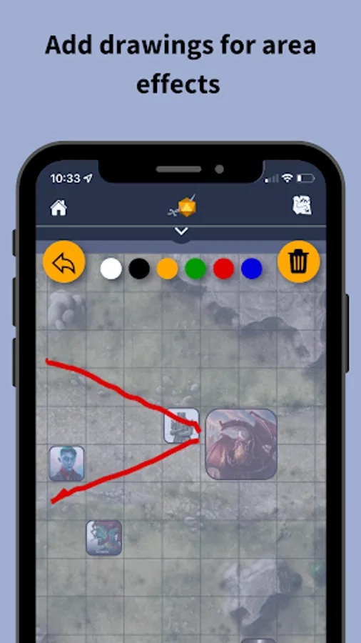 Map: Use any image for a map, add any image for tokens, add drawings to the map, and map updates for everyone real-time.