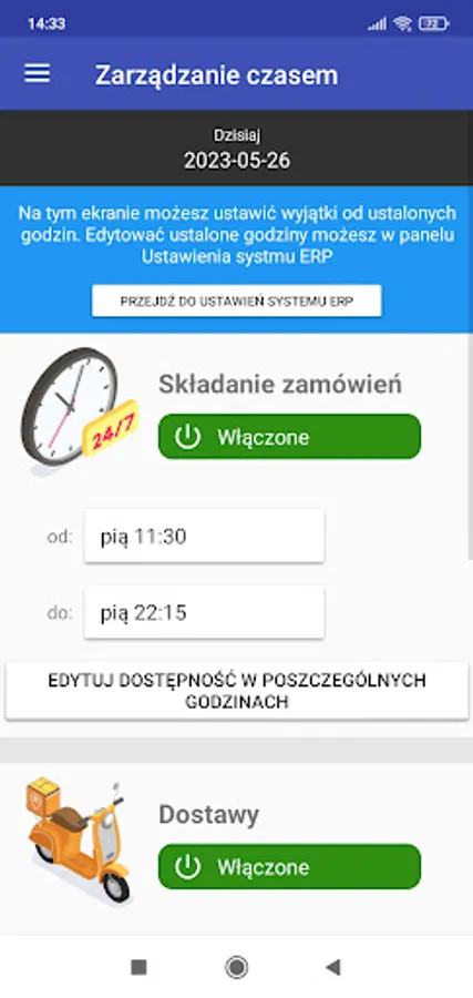 - Management of deliveries, delivery areas and drivers.