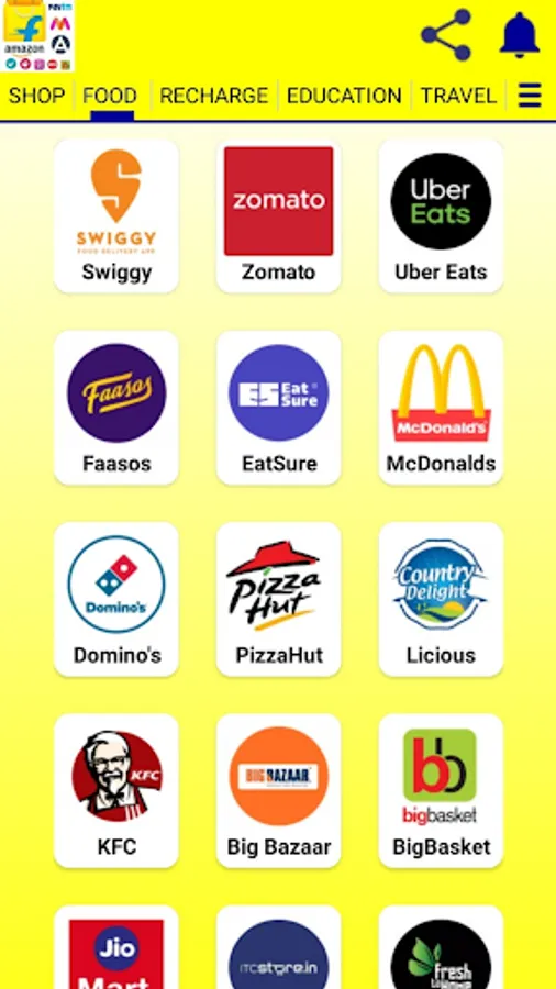 Swiggy, Zomato, Pizza Hut, McDonalds