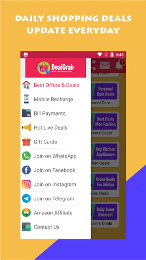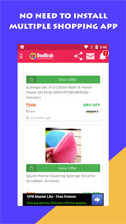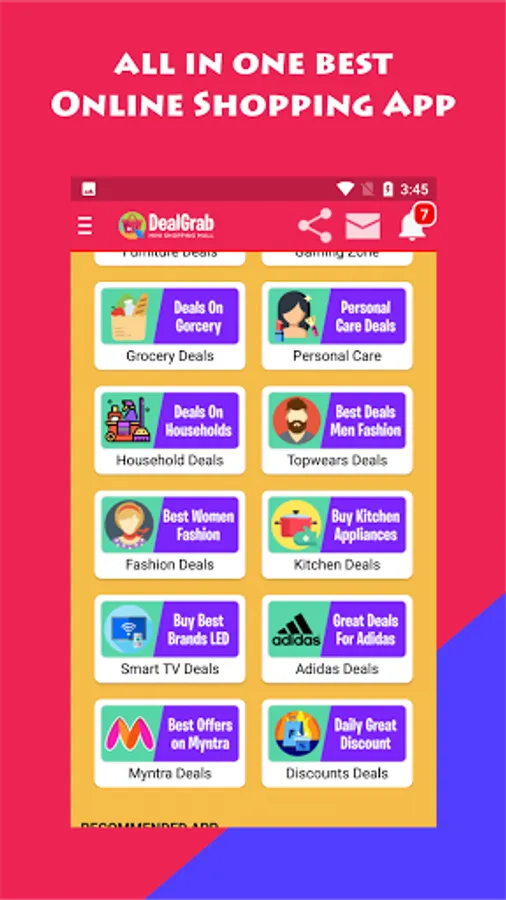 All-in-One Shopping App Dealgrab: Free Online Shopping Apps in India. Now you don't have to worry about app memory, data packet, and lots of unwanted notifications. Download the lightest version of all Indian online shopping apps in one size of only 2MB. This app has a collection of over 200 online shopping apps in one app. In this app, we make all shopping apps into one shopping app in one. Download the All Shopping app and start shopping on all popular shopping portals.