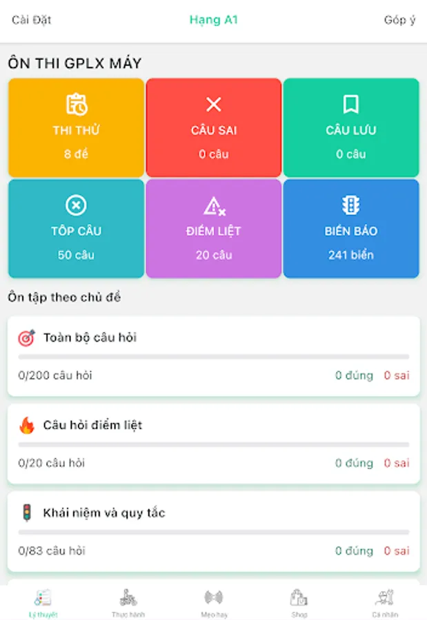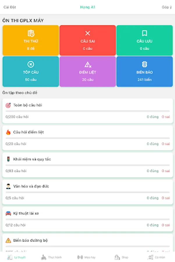 This is an application that helps you learn theory to prepare for the A1, A2 motorcycle license theory exam. Please follow the steps according to the instructions in the application to save time as well as memorize the answers to the driving theory test questions to get the best test results and shorten the time to practice quickly. fastest!
