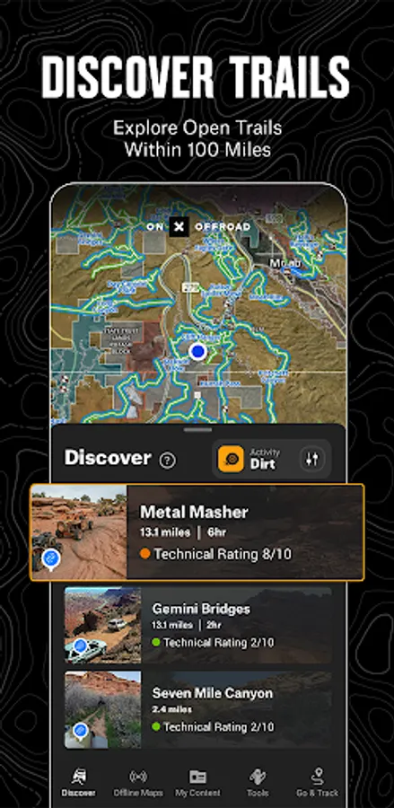 GPS mapping App that lets you easily find the off-road trails you're looking for—whether you want to discover what’s open nearby or explore somewhere new. Filter 615K miles of nationwide trails by accessibility for 4x4, SxS, dirt bikes, moto, ATV/Quads, Overland, and snowmobiles.
