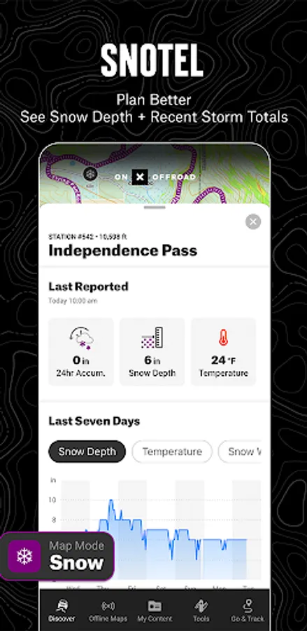 With map data sourced from USFS, MVUM, BLM, and NPS, our color-coded basemap includes off-road trails, Public Land boundaries, and recreation points to let you quickly scan for open routes near you and locate dispersed camping or campgrounds. Tap anywhere on the map to find hiking trailheads, trailer parking, non-ethanol fuel stations, boat launches, fishing access, and more. Scout the landscape and visualize mountains by viewing your maps in 3D, topo, satellite imagery, or a hybrid.