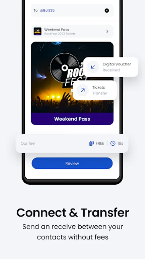 • Send and receive tickets, vouchers and collectibles between your contacts without fees