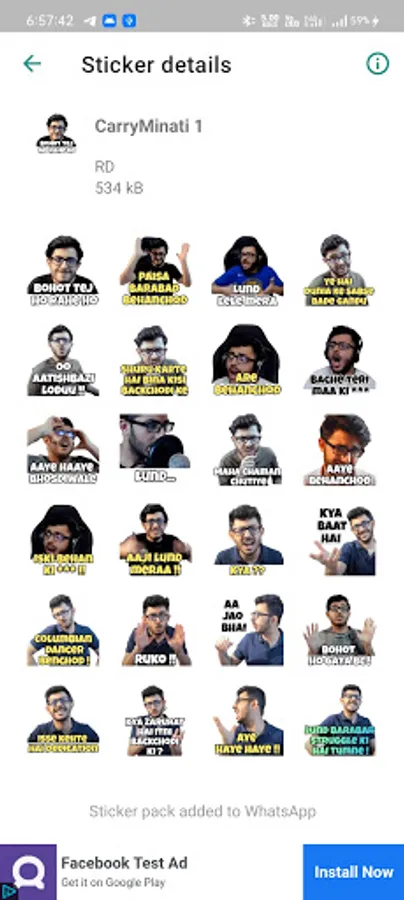 Need New Funny And Latest Stickers For WhatsApp ? Yes ! We have A Big Collection of Carryminati Sticker.