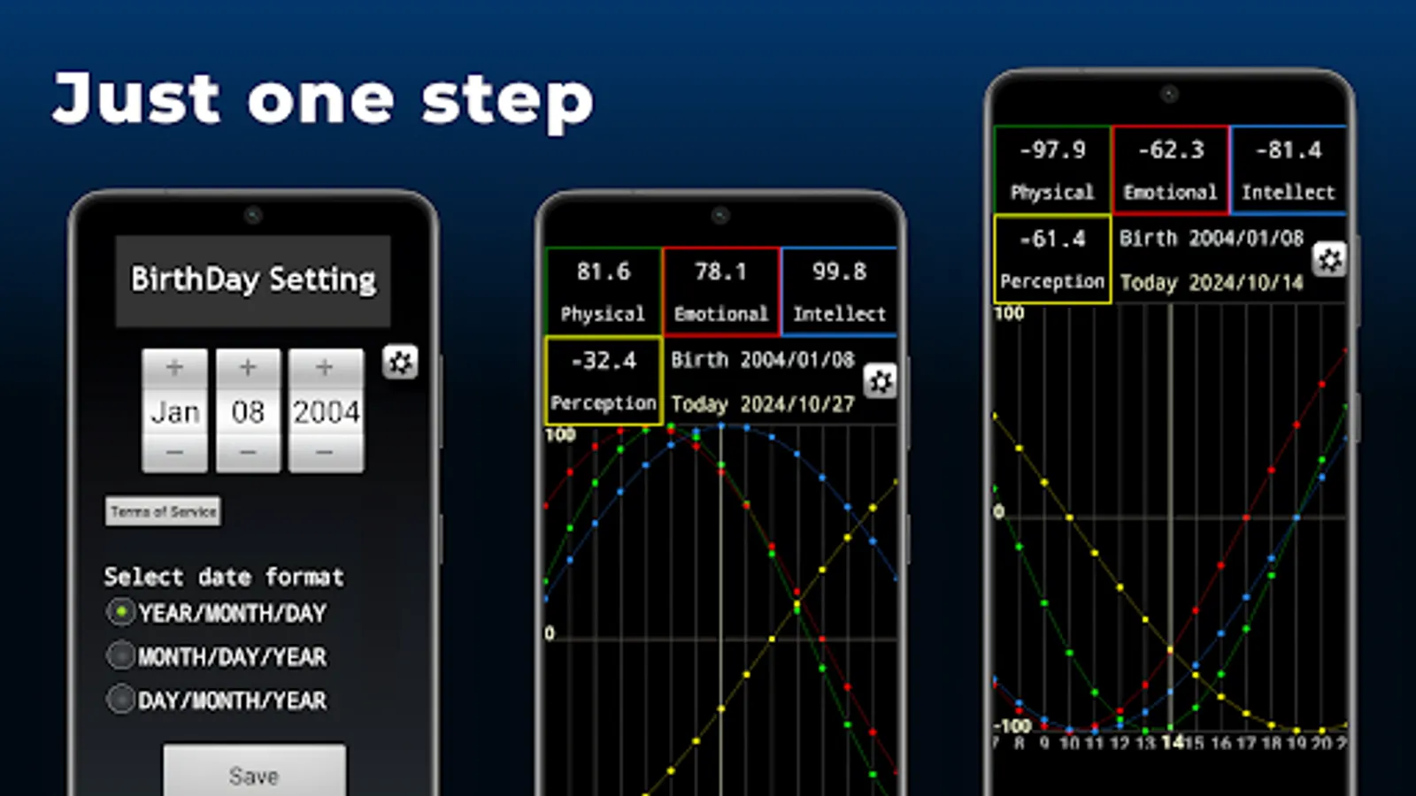 With this Biorhythm App, you can effortlessly calculate and track your biorhythms, making it easier than ever to stay aware of your natural cycles. Designed for simplicity and ease of use, this app lets you quickly understand your current state with just a few taps.
