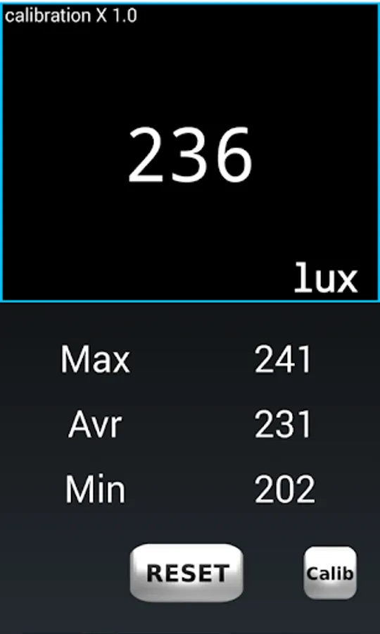 This light meter app reports its values in lux value, and has a typical dynamic range between 1 and 30,000 lux level.