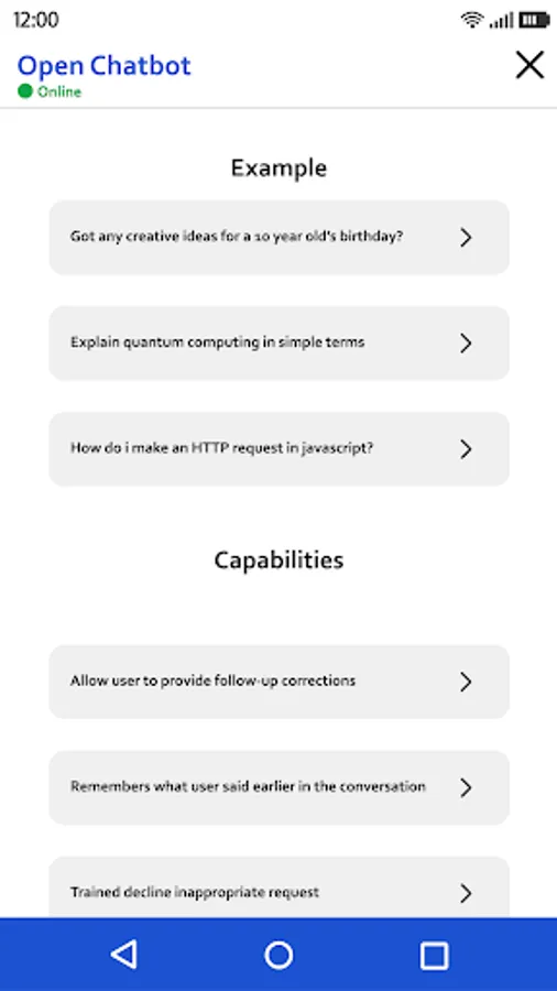 Open Chatbot is an android open assistant chatbot app, that is powered by GPT model to deliver any AI-powered search, conversation, text completion, and other advanced AI features.