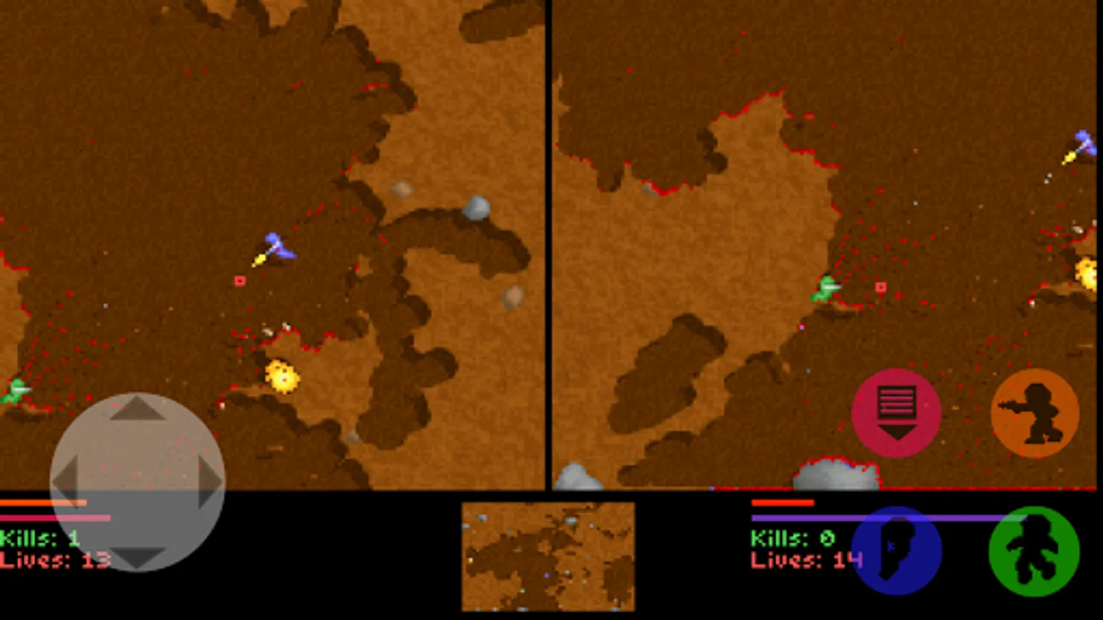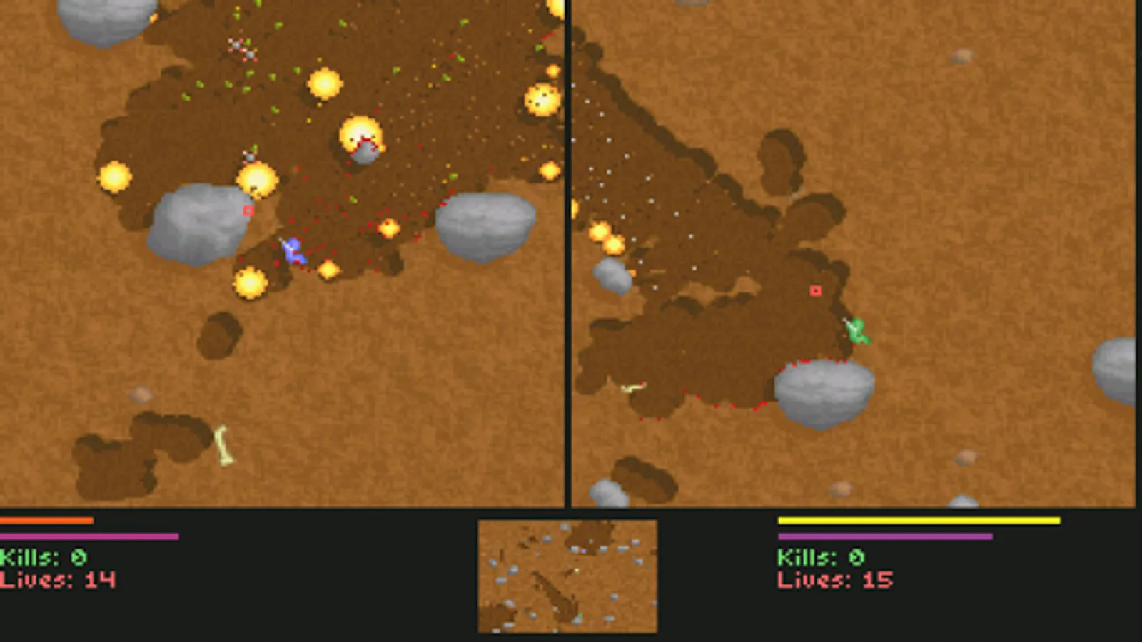 A game about two worms demolishing some dirt with Big Nukes and 0% reload time.