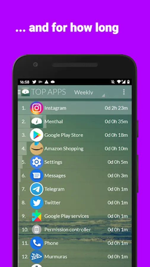 Menthal shows you which apps are making you addicted and makes transparent which companies are targeting you on social media. Menthal is the app for digital dieting and a sustainable digital lifestyle. The app helps you fight smartphone addiction and raises consumer awareness by providing feedback on your smartphone usage. Menthal is completely free, ad-free and battery-friendly. Your data is processed anonymously on German servers.