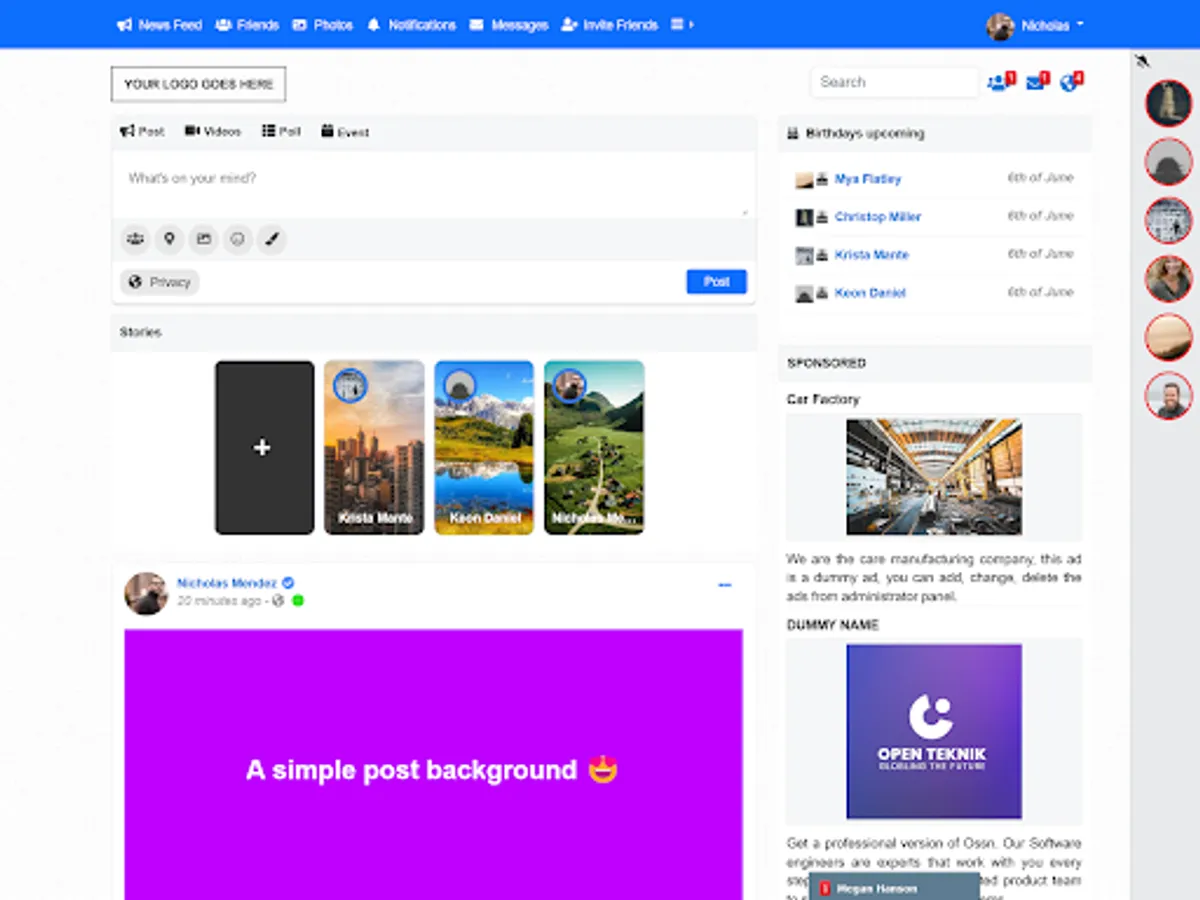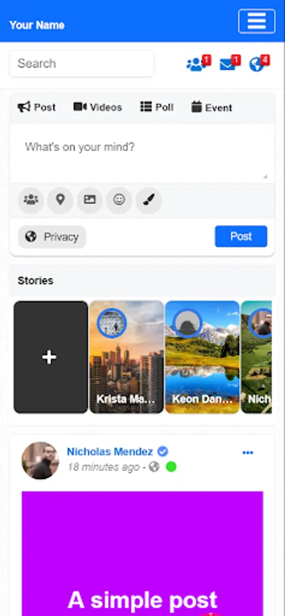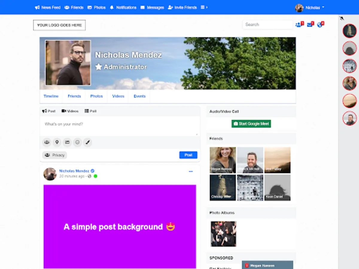 This social network application allow you to connect with your friends, post photos, videos, events , polls etc.