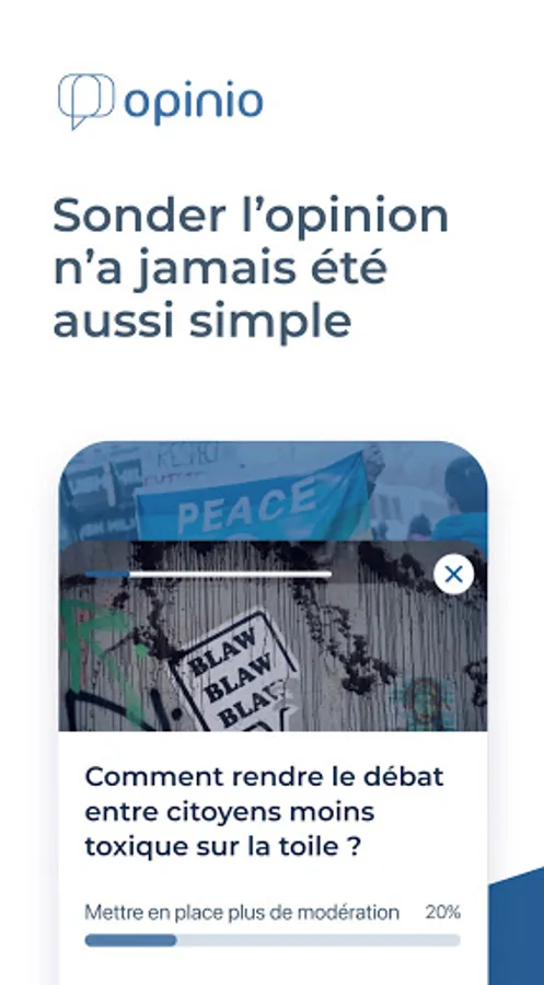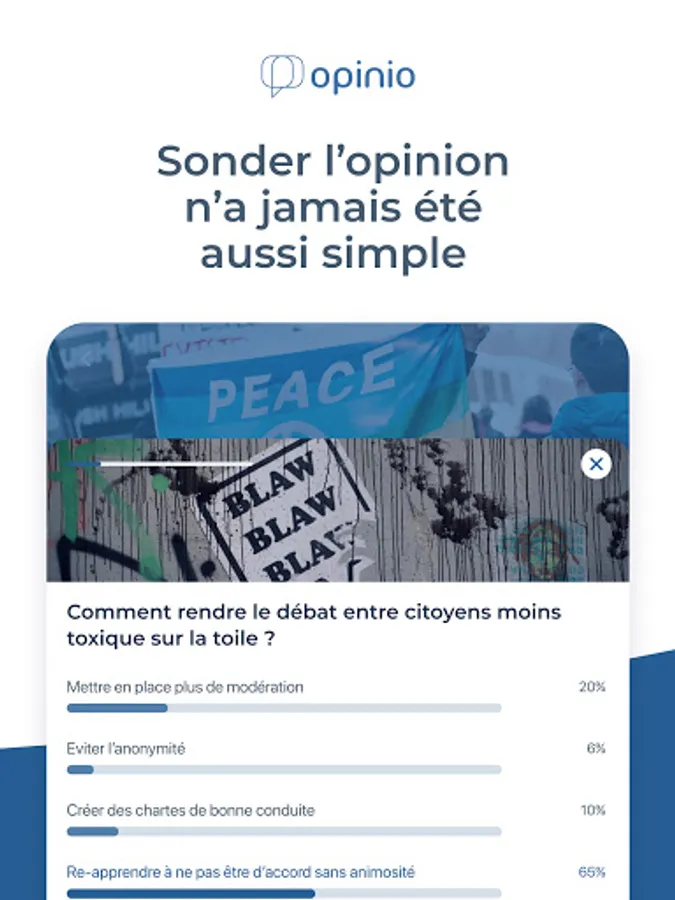 opinio allows to survey the population on social issues (daily life, politics, leisure, travel, sports forecasts ...)