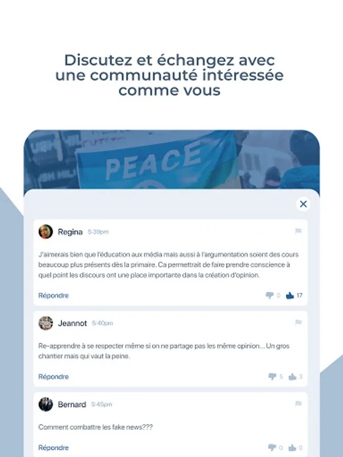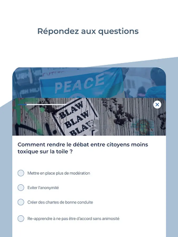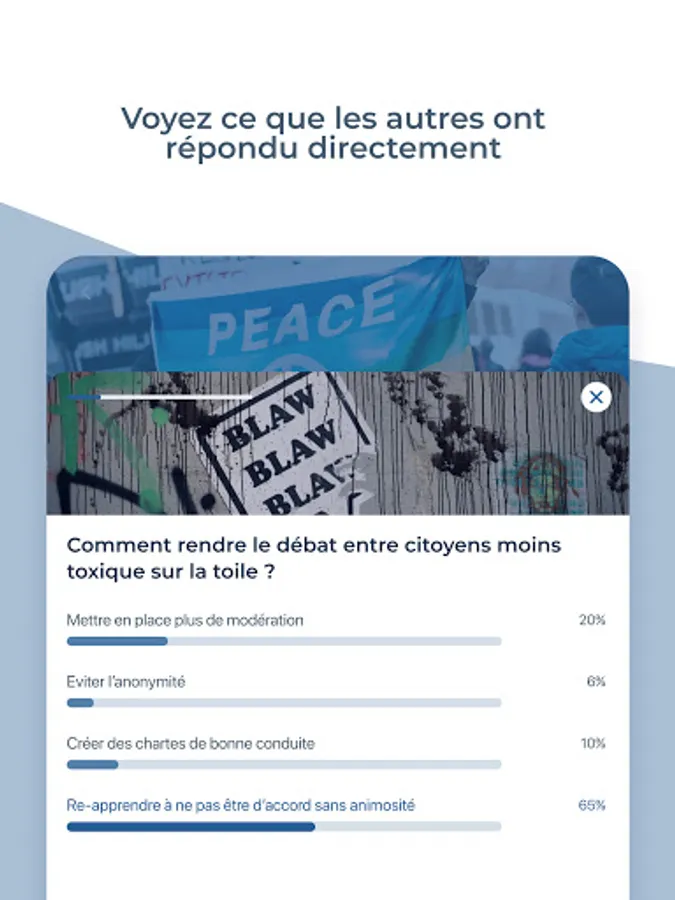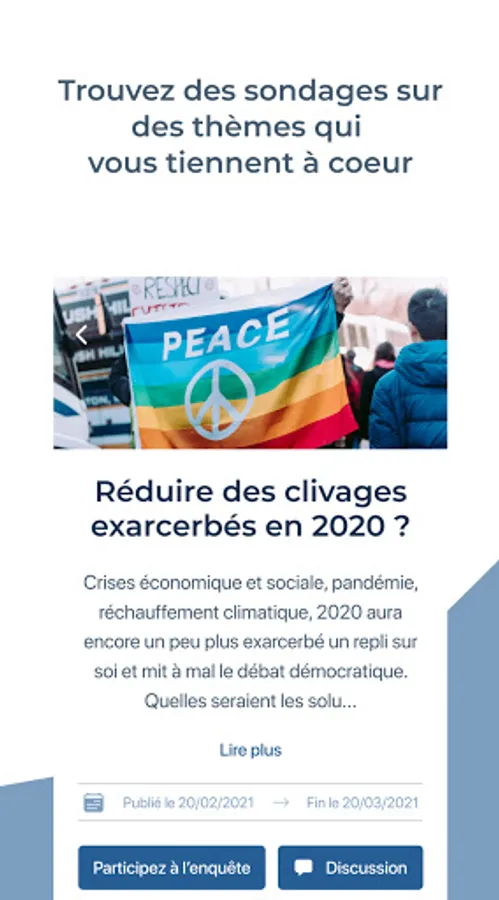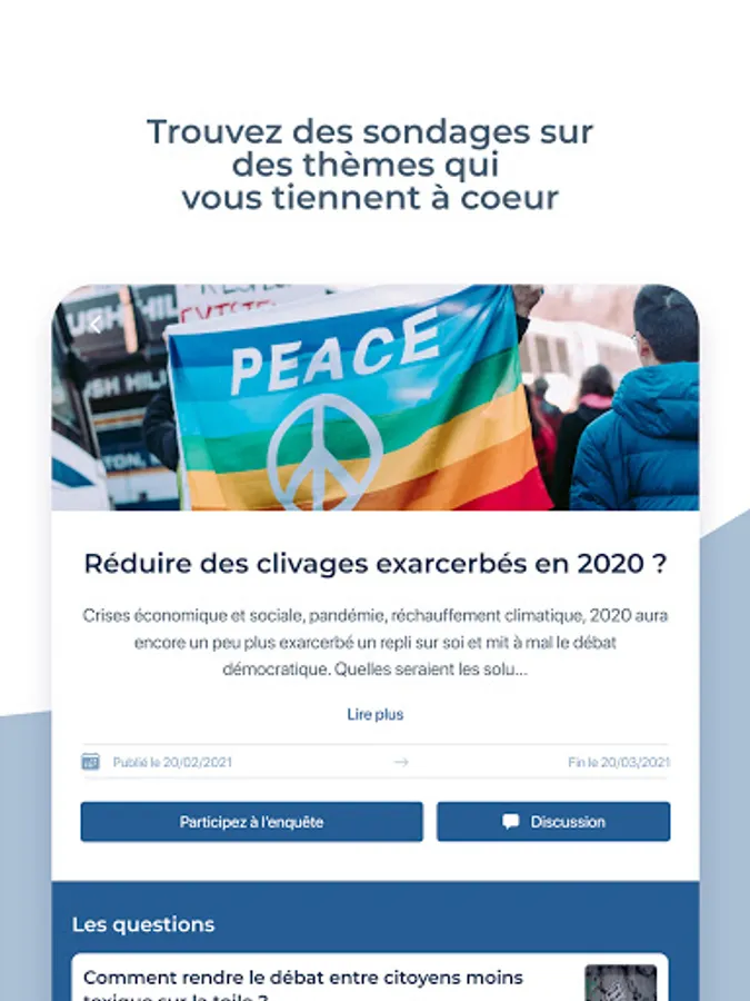 Indeed, the purpose of this application is to get out of traditional debates where specialties (whether political, journalists, researchers, business leaders ...) exchange without consulting the general public on issues that directly affect them .