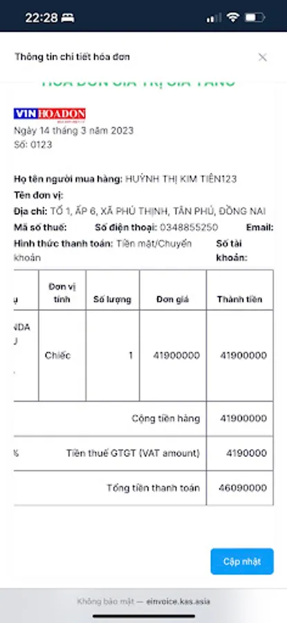 Vending machines issue invoices for payment