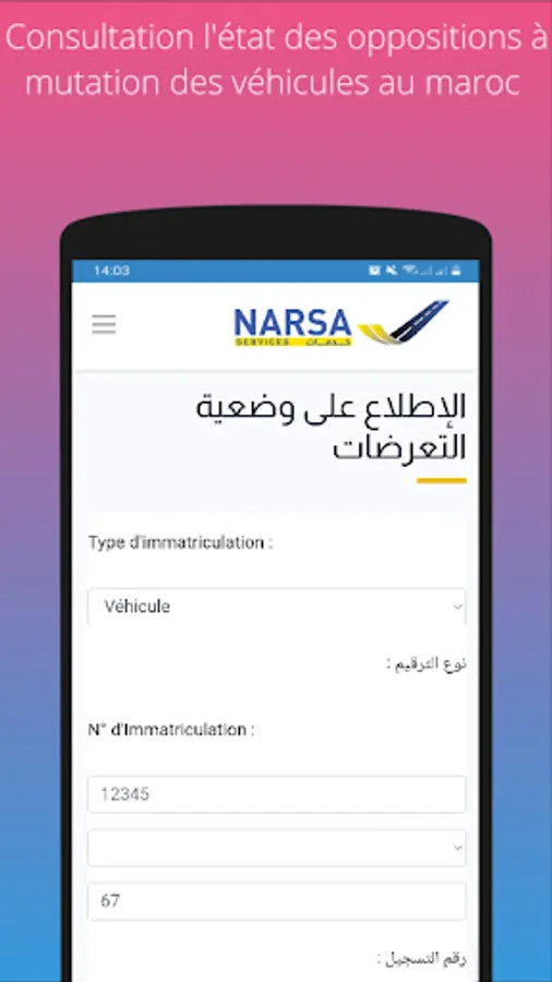 Consultation de l'état des oppositions à mutation des véhicules au maroc