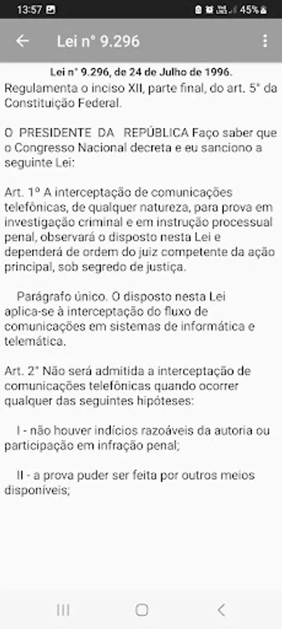 The Professor - Telephone Interception Law is an application for mobile devices that aims to make available Law No. 9,296, of July 24, 1996, to all interested parties who intend to hold public tenders.