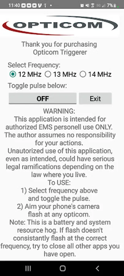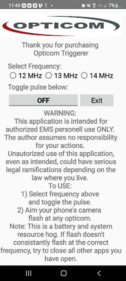 This app will allow you to trigger an Opticom senor using only your phones camera flash.