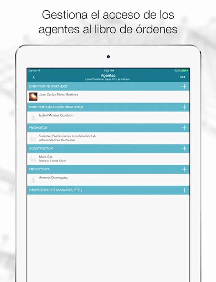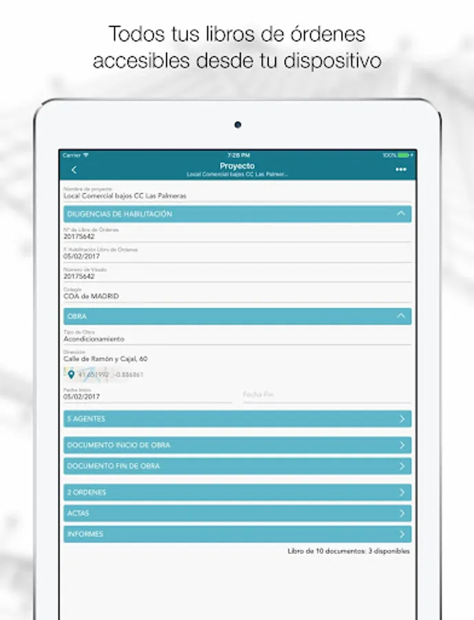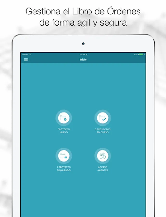 - Access agents: all agents discharged in a project Electronic Book orders may download the App for free and access the Order Book of the Work in performing their intervention.