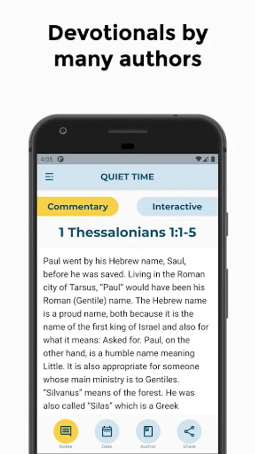 Make use of powerful tools to journal, tag and search through your daily devotional thoughts.