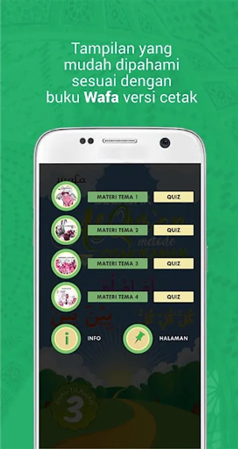 This application can be used independently at home with a parent's guide so that it will be easier and faster to receive the Qur'an Wafa Method lessons at school.