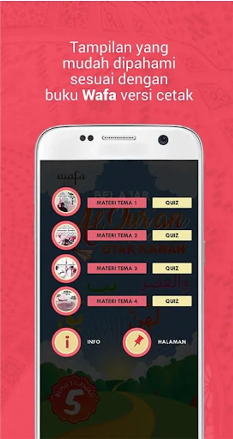 This application can be used independently at home with a parent's guide so that it will be easier and faster to receive the Qur'an Wafa Method lessons at school.