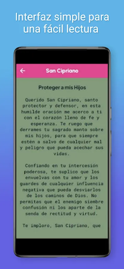 One of the key features of "Prayers to San Cipriano" is its availability without an internet connection. This means that you can access the app and find solace in prayer anytime, anywhere, even in areas with limited connectivity. Ensures you have access to powerful prayers when you need them most.