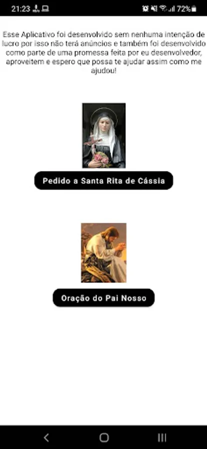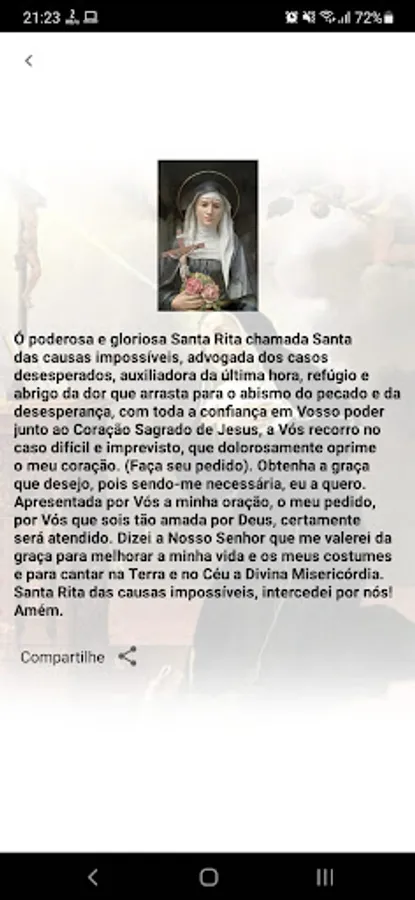 Application to help you in how to make a promise to Santa Rita de Cássia and also share the prayer with other people, it also has the Our Father prayer. I hope it can help you like it helped me!