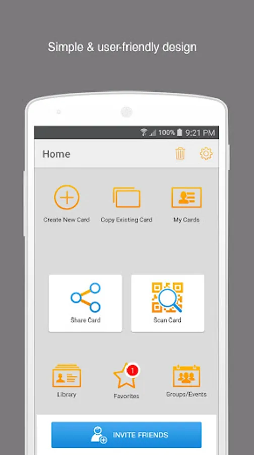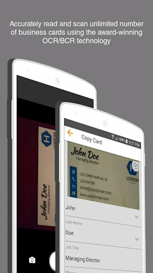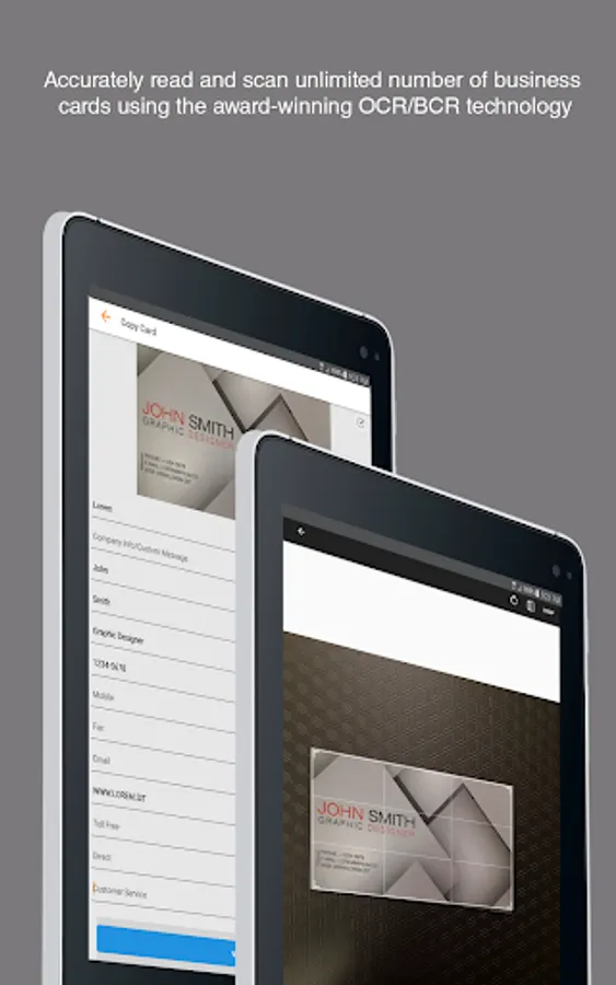 * Access your business cards on All Devices from anywhere in the world using smartphone, tablet or Web App.