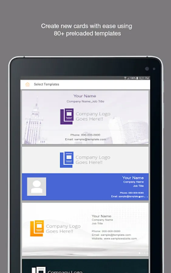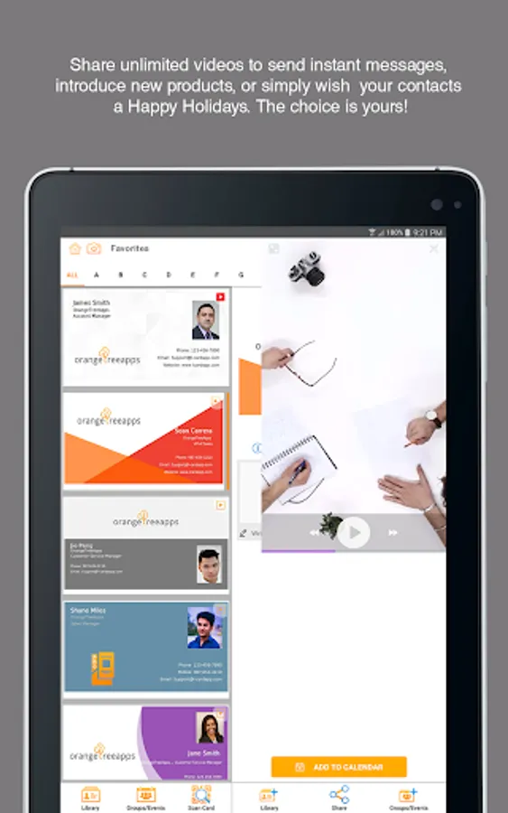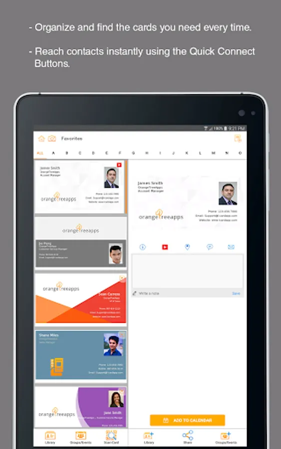 * The card Listing feature allows users to list cards on tablets for the business event participants to scan and collect. Great for displaying business cards at offices, trade shows & other business events.