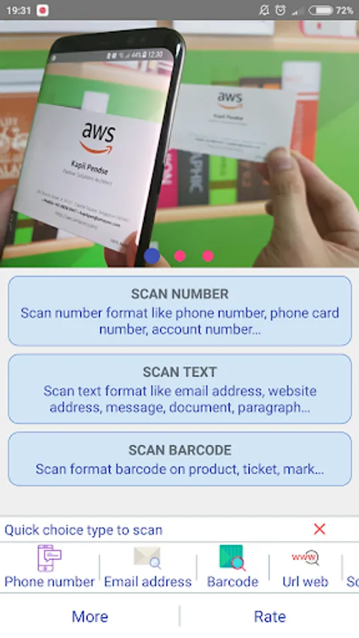 Turn your smartphone into a scanner to extract info. Just a phone that you can scan from camera to extract the desired information like email address, phone number, web path, barcode and more